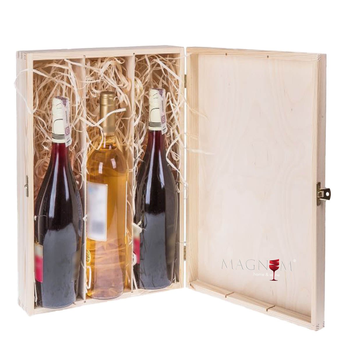 Perfekt für Geburtstage, Jubiläen, Feiertage oder Firmengeschenke – die Holzkiste mit Klappdeckel ist eine geschmackvolle Art, Wein zu präsentieren und zu verschenken.