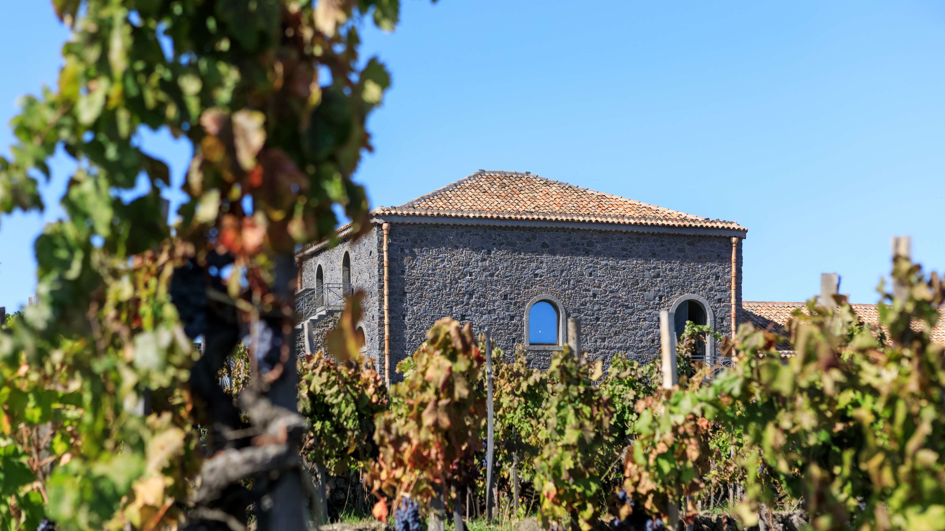 Contrada Santo Spirito, Passopisciaro, Etna; Nordausrichtung Schwarzer und brauner (60-70%) Vulkansand; Felsgestein Bäumchenerziehung gestützt mit Pfählen aus Kastanienholz. Strohgelbe Farbe; fruchtig, steinig, mit Noten weißer Blüten, Zitrusfrüchten, Salbei und Minze; mineralisch, frisch mit langem Abgang;